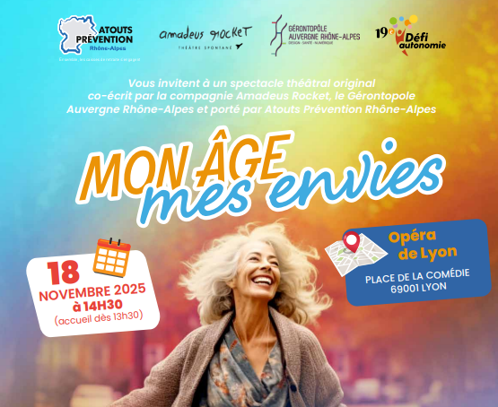 Après Belley (01) et La Grand Croix (42), la pièce de théâtre « Mon âge, mes envies » sera jouée lors du DEFI AUTONOMIE le mardi 18 novembre 2025.​